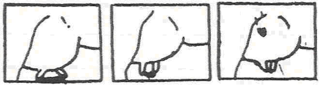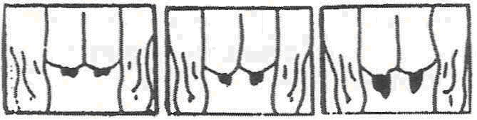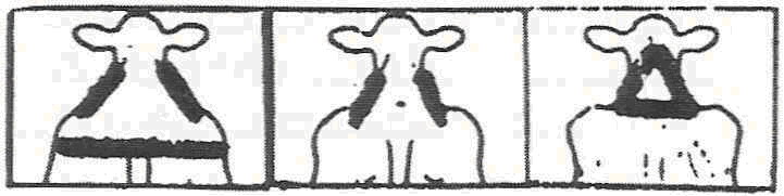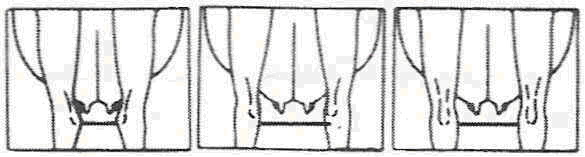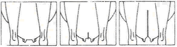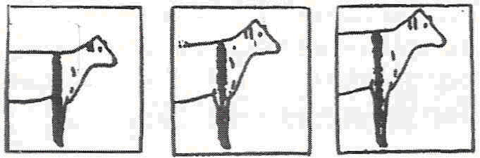 LIGAMENTO MEDIO DE LA UBRE (LMU) 05 = Completamente plana 10 = Surco ligero 15 = Surco mediano 25 = Surco definido (con profundidad = 2,5 cm) 35 = Surco bien definido 45 = Surco muy fuerte: (profundidad > 5 cm) |