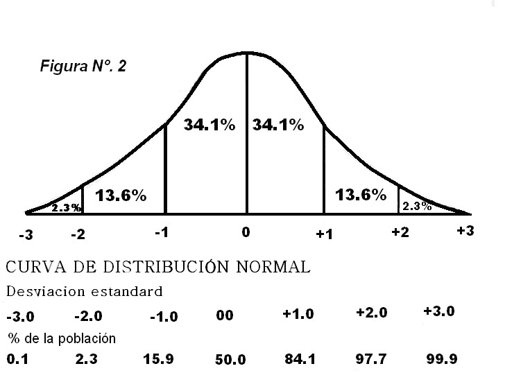 La figura Nº 02 muestra la distribución normal de frecuencias de una población, es decir indica el porcentaje de animales que están comprendidos para un determinado valor expresado en unidades de desviación estándar.