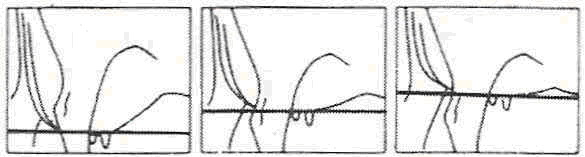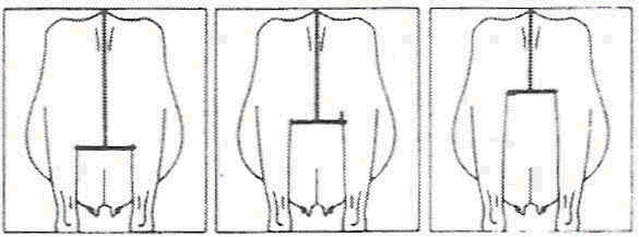 más alto (5 cm) que íleon 15. Isquion más alto (2 cm) que íleon 20. Línea isquion-íleon paralela al suelo 25. Isquion más bajo (5 cm) que íleon 35. Isquion más bajo (10 cm) que íleon 45. Isquion más bajo (15 cm) que íleon |